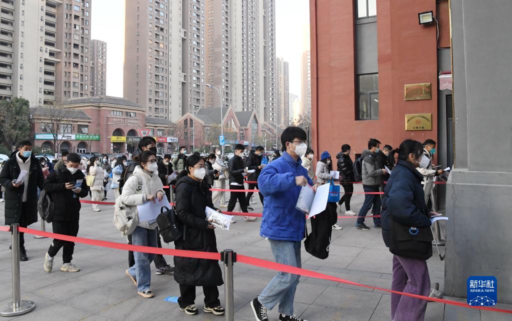 1月7日-8日,中央机关及其直属机构2023年度考试录用公务员笔试举行。这是1月8日,在安徽省合肥市第四十五中学橡树湾校区考点,考生入场准备参加公共科目笔试。