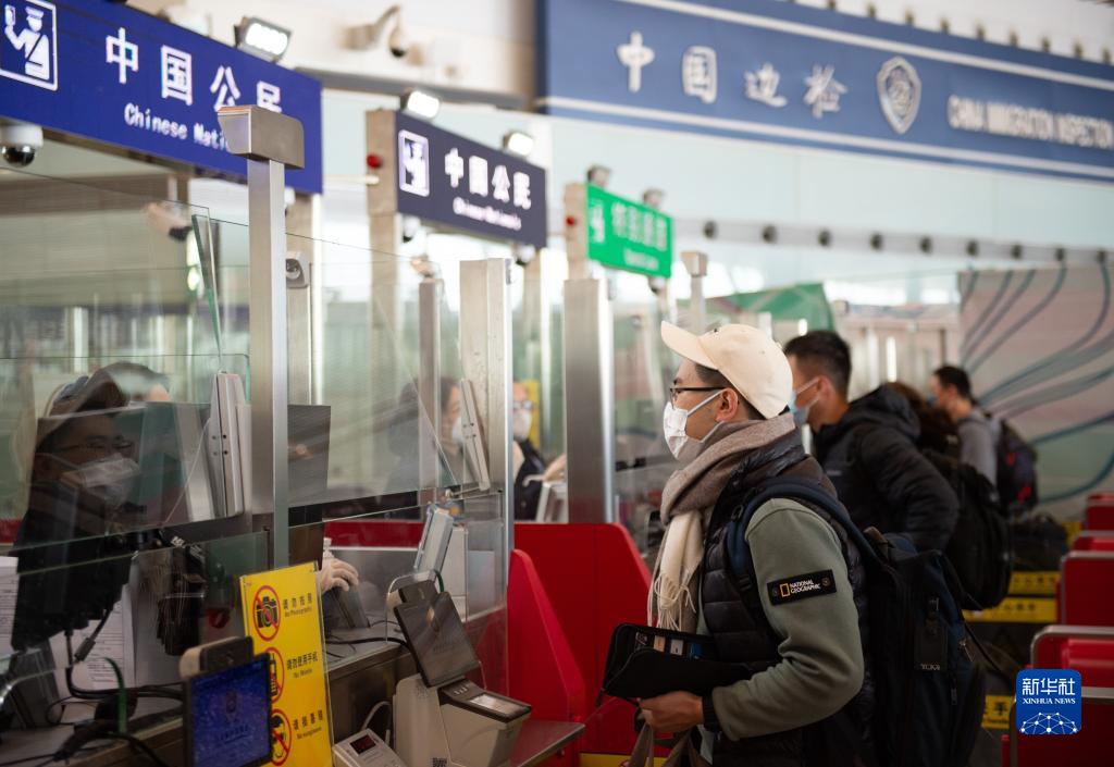 1月8日,入境旅客在首都国际机场T3-E边检查验柜台办理入境手续。