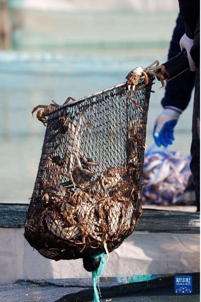 春节临近,江苏省宿迁市泗洪县蟹农养殖的近20万亩螃蟹迎来销售旺季,当地养殖户纷纷忙着捕捞螃蟹供应春节市场。