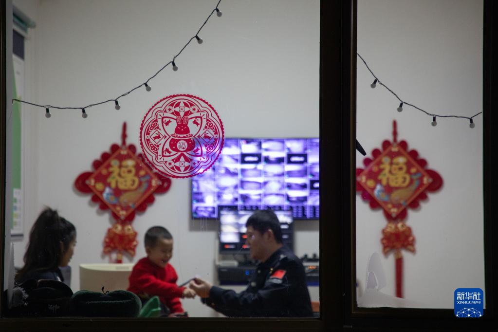 1月8日,史先强和妻子沈欣陪孩子在洛古河夫妻警务室里玩耍。