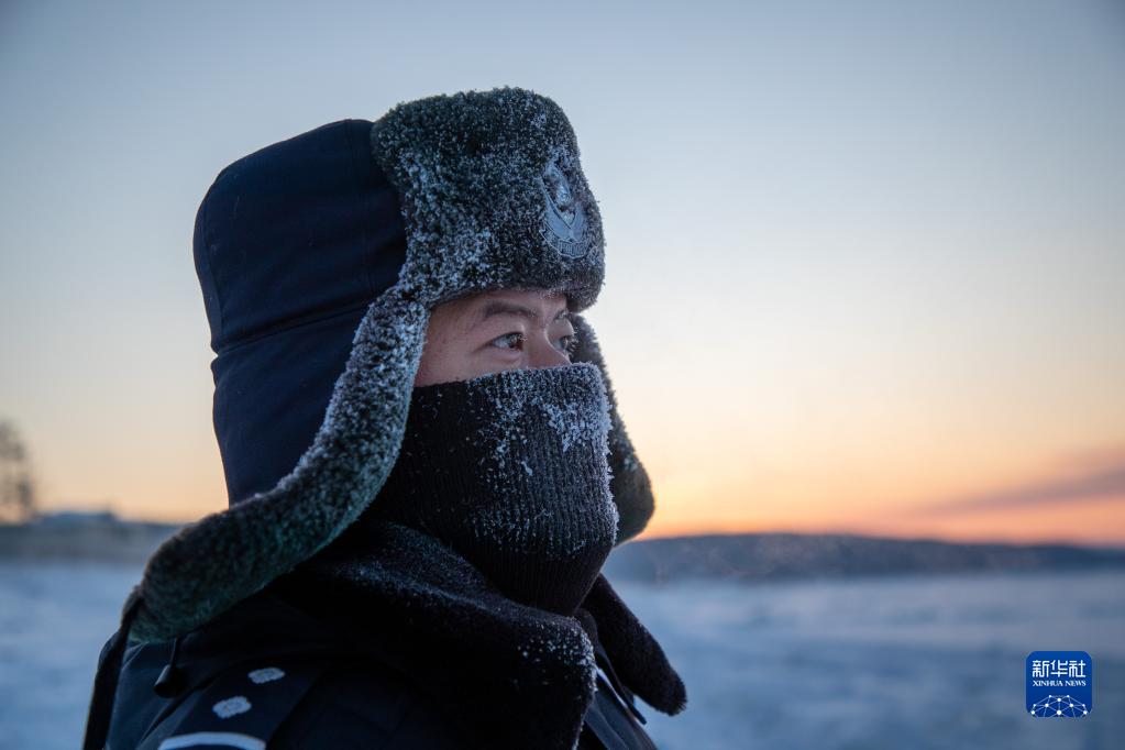 1月8日,史先强在洛古河村旁封冻的黑龙江江面上进行边境巡逻。