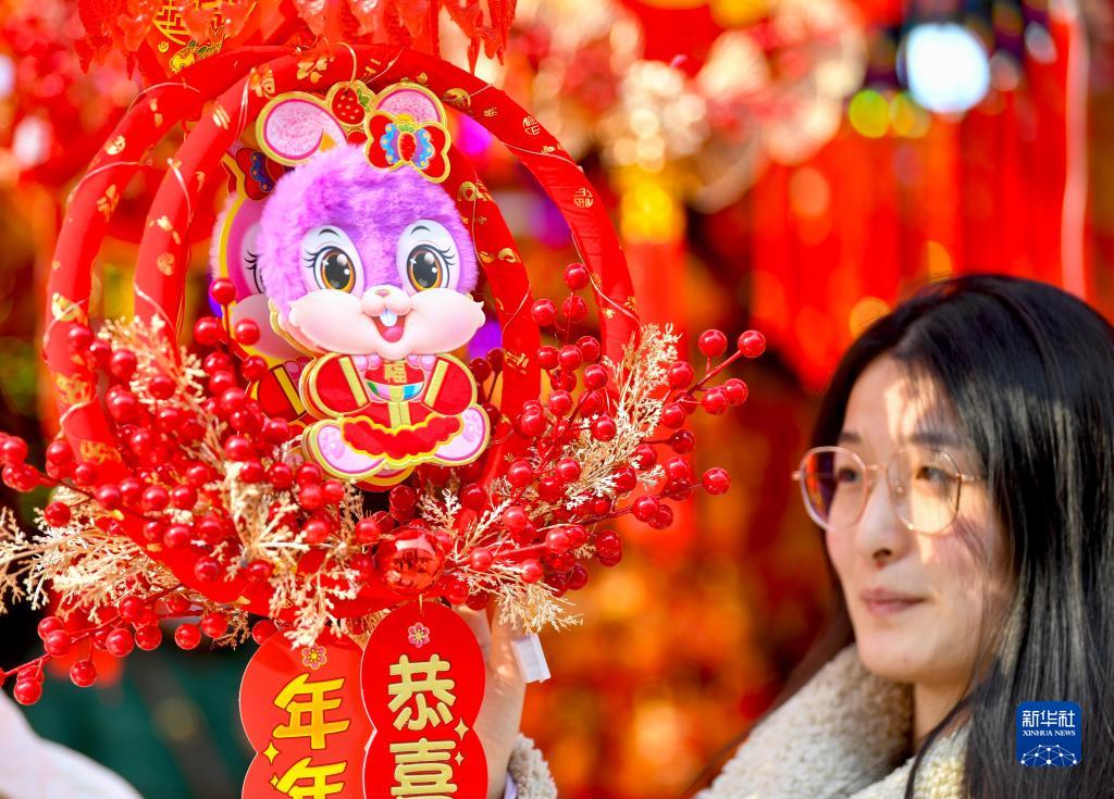 1月9日,市民在安徽省亳州市谯城区一家年货市场选购新春饰品。