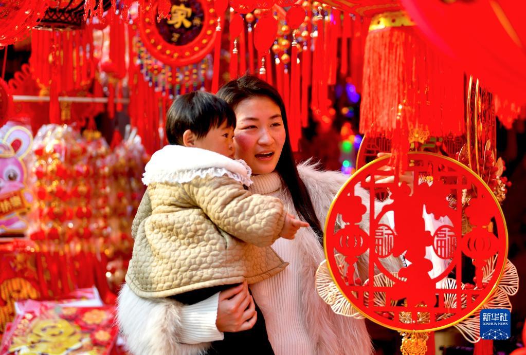 1月9日,市民在安徽省亳州市谯城区一家年货市场选购新春饰品。