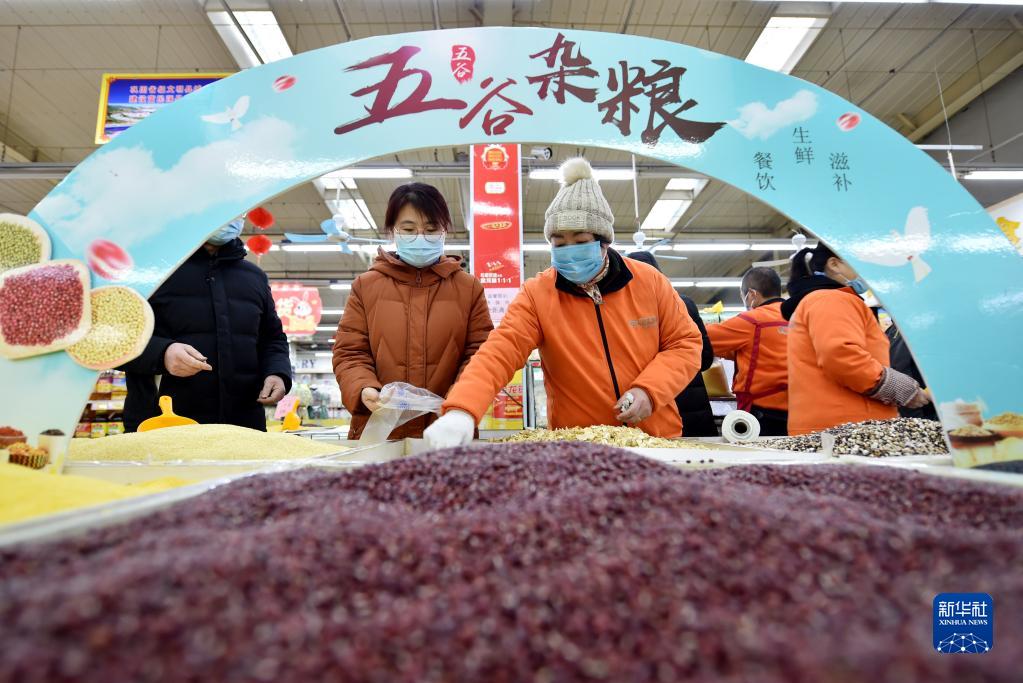 1月9日,在河北省石家庄市井陉县一家商超,群众购买五谷杂粮。