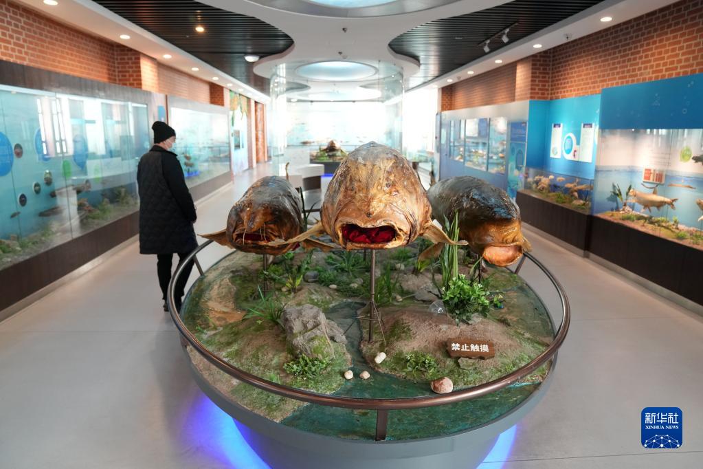 1月9日,参观者在抚远市鱼博馆参观。