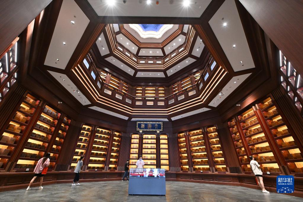 2022年7月30日,观众在中国国家版本馆中央总馆文瀚厅内参观。当日,中国国家版本馆开馆暨展览开幕式在中国国家版本馆中央总馆举行。