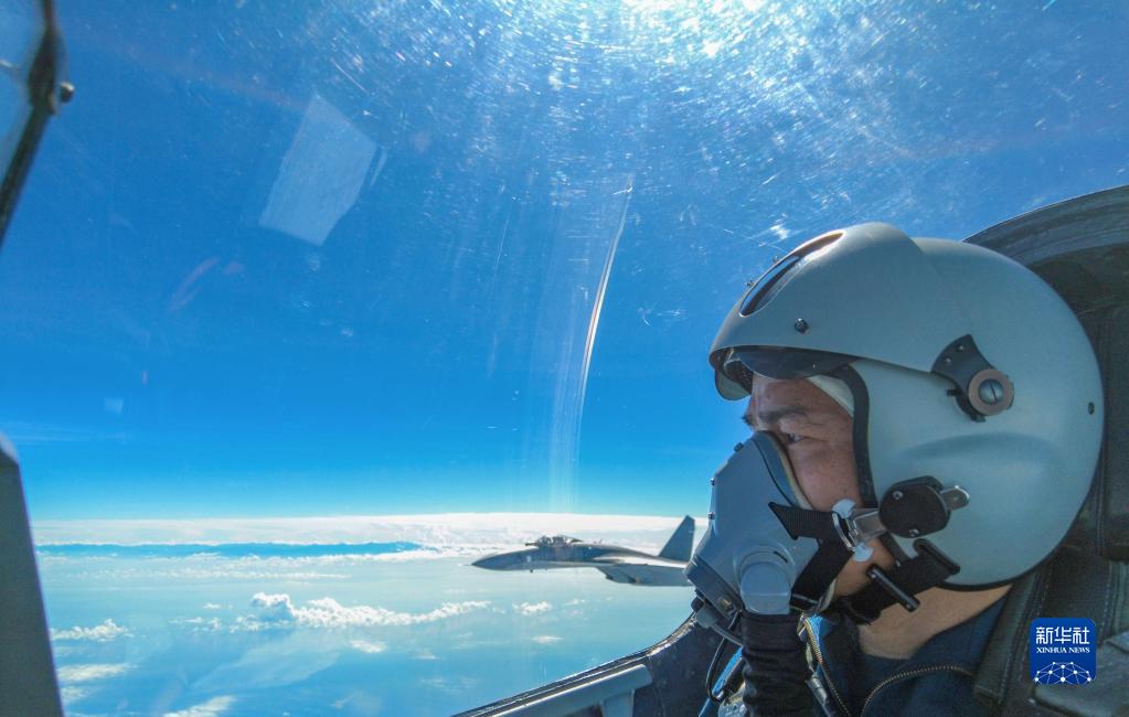 2022年8月7日,中国人民解放军东部战区按计划,继续在台岛周边海空域进行实战化联合演训。这是战机正在进行编队飞行。