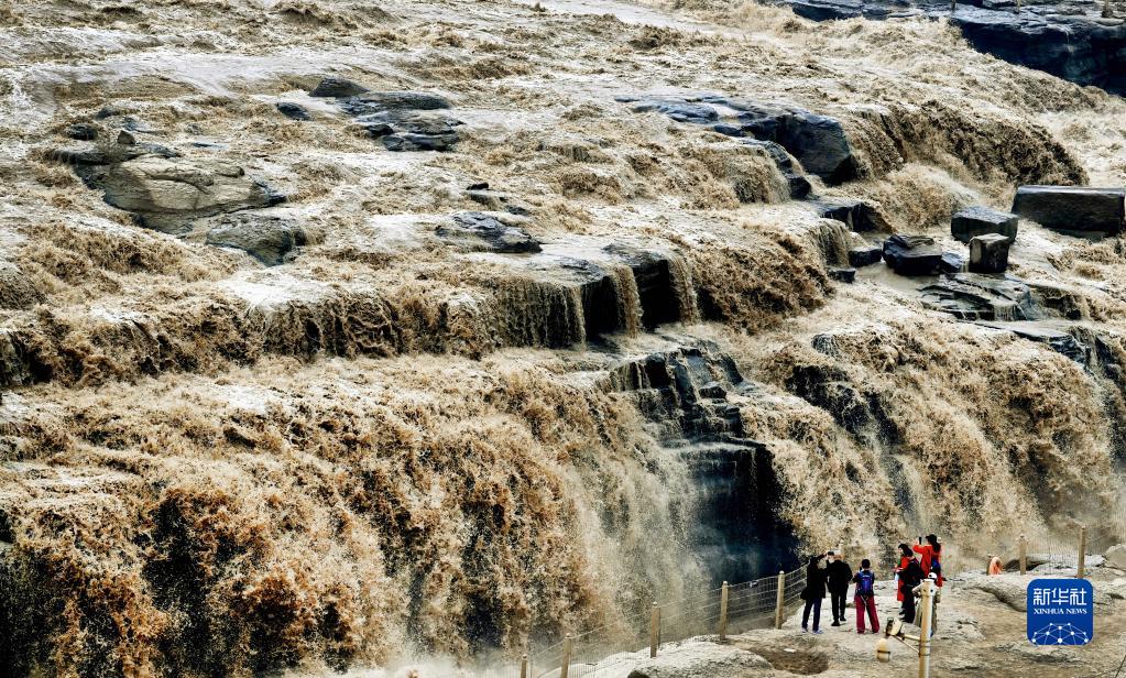 2022年9月15日,游人在黄河壶口瀑布群前拍照、游览。