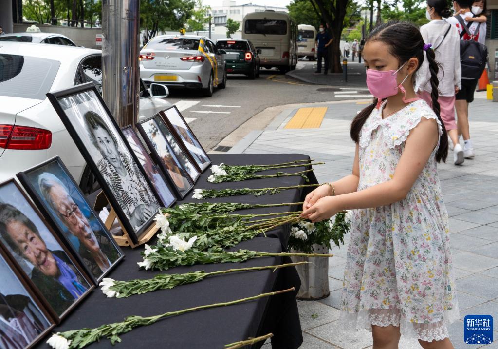 2022年8月14日,一名儿童在韩国首尔举行的日军“慰安妇”受害者纪念日活动上献花。当日是世界“慰安妇”纪念日。