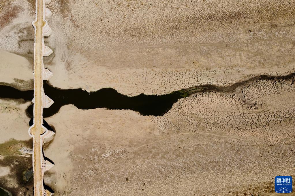 这是2022年8月15日用无人机拍摄的干涸的西班牙锡哈拉水库,上世纪50年代因水库落成而被淹没的梅斯塔古桥重见天日。西班牙2022年夏天经历多轮热浪,全国水库蓄水量不足40%。