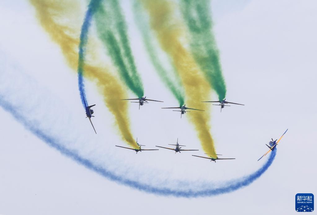 2022年9月7日,飞机在巴西里约热内卢科帕卡巴纳海滩上空进行飞行表演,庆祝巴西独立200周年。