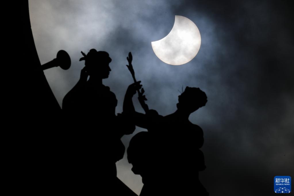 这是2022年10月25日在比利时布鲁塞尔五十周年纪念公园拍摄的日偏食。