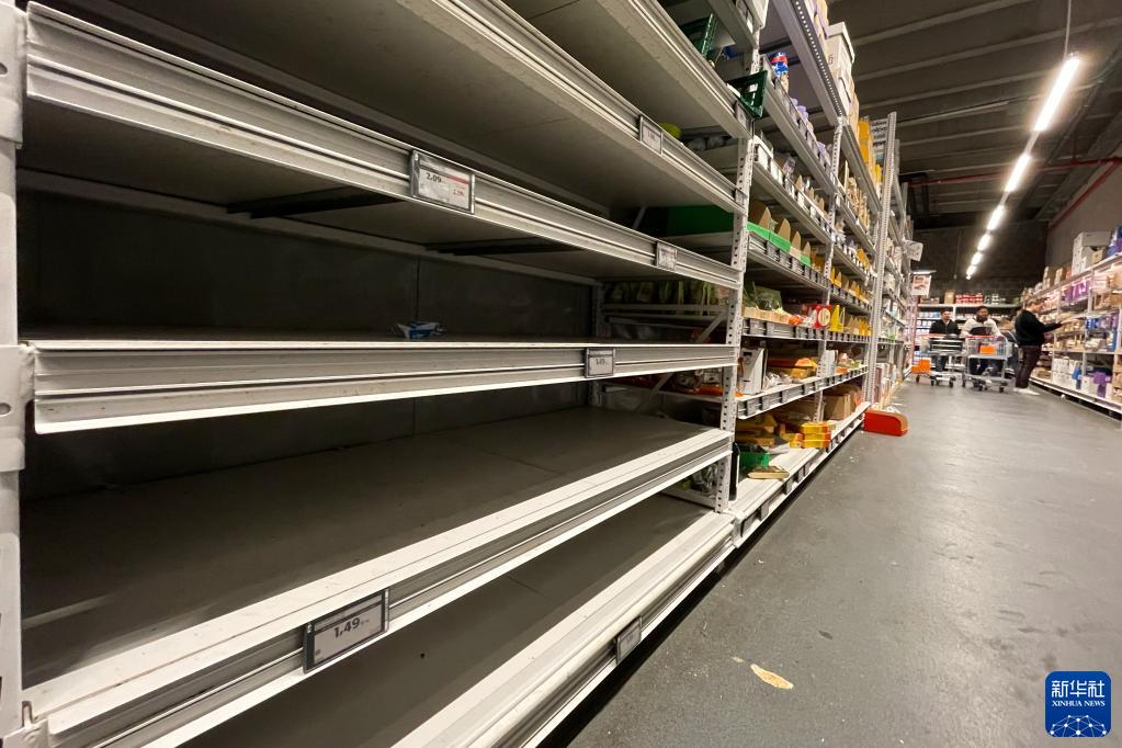 2022年10月31日,比利时布鲁塞尔一家超市售卖平价鸡蛋的货架空空如也。2022年,欧元区各国通胀率持续飙升,企业经营压力与民众生活负担不断加重。