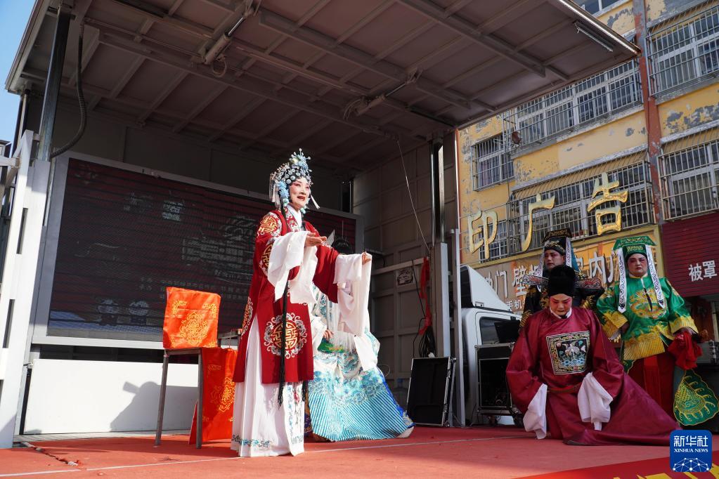 1月9日,在山东省郓城县黄集镇举行的送戏下乡演出活动上,郓城县文化馆的戏曲演员在表演传统地方戏曲剧种山东梆子。
