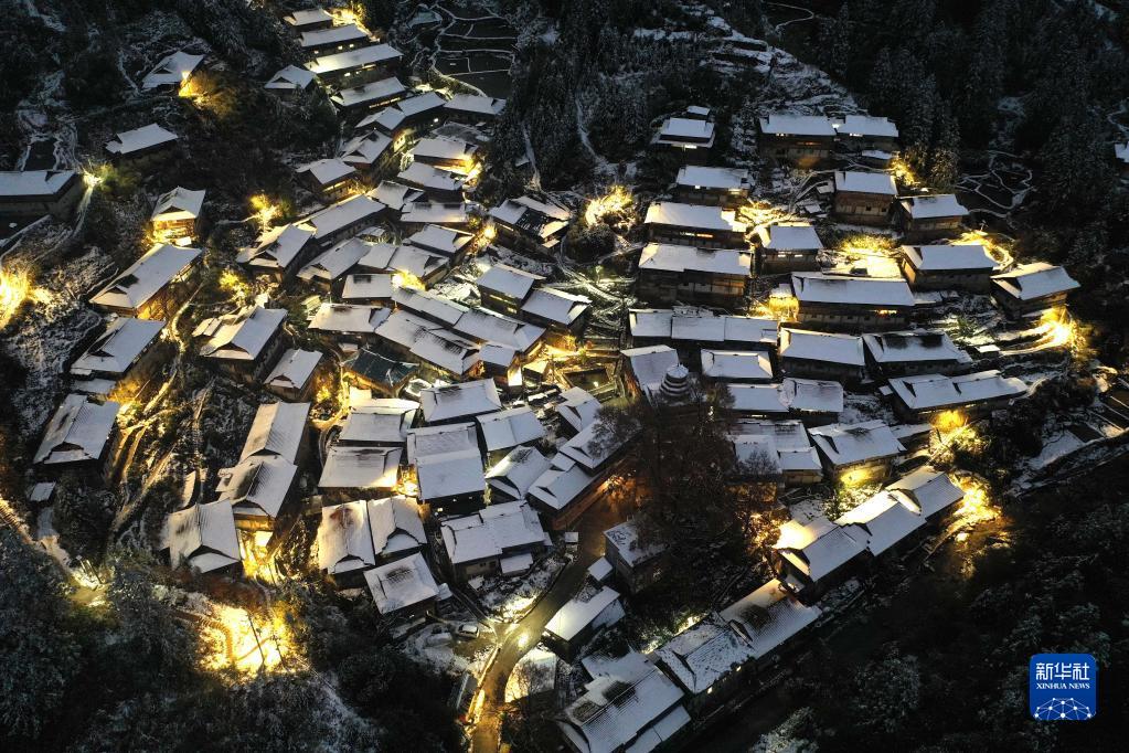 这是2022年12月28日拍摄的广西融水苗族自治县杆洞乡党鸠村雪景(无人机照片)。当日,广西融水苗族自治县迎来降雪。