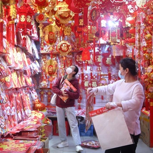 春节临近,多地年货市场红火起来,人们选购春节饰品,迎接新春佳节。新华社记者 卢汉欣 摄