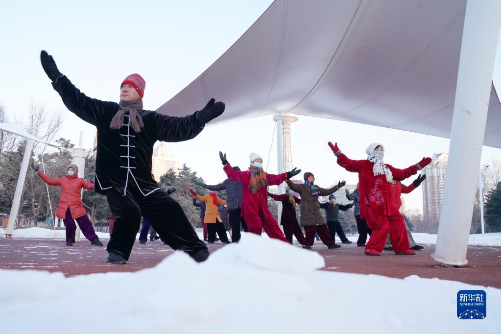 2022年1月2日,市民在哈尔滨市一个公园内健身。