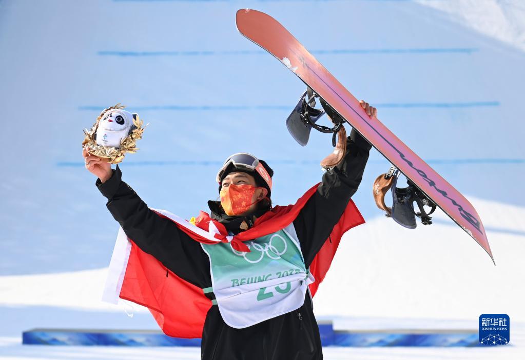 当日,北京2022年冬奥会单板滑雪男子大跳台决赛在北京首钢滑雪大跳台举行。中国选手苏翊鸣夺得金牌。