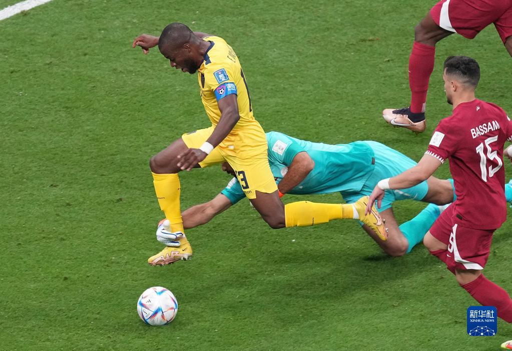 当日,在海湾球场举行的2022年卡塔尔世界杯揭幕战中,厄瓜多尔队以2比0战胜东道主卡塔尔队,恩纳·瓦伦西亚在本场比赛中独中两元。