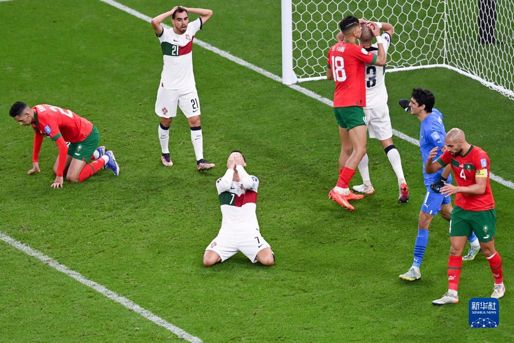 当日,在卡塔尔多哈阿图玛玛球场进行的2022卡塔尔世界杯足球赛四分之一决赛中,摩洛哥队以1比0战胜葡萄牙队。