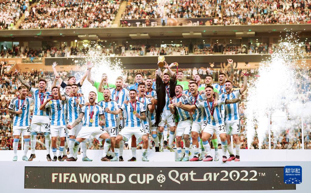 当日,在卡塔尔卢赛尔球场进行的2022卡塔尔世界杯足球赛决赛中,阿根廷队与法国队在常规时间和加时赛战成3比3平,通过点球大战阿根廷队以总比分7比5获胜,夺得冠军。