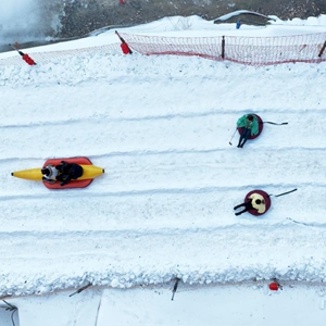 1月9日,游客在邢台天河山景区冰雪乐园游玩(无人机照片)。