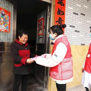 1月9日,在赤水市文华街道望城社区,医护人员和党员志愿者为老人发放防疫“健康包”。