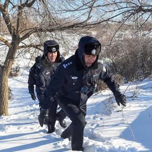 1月9日,西乌珠穆沁旗公安局古日格斯台国家级自然保护区迪彦派出所民警在林区徒步巡逻。