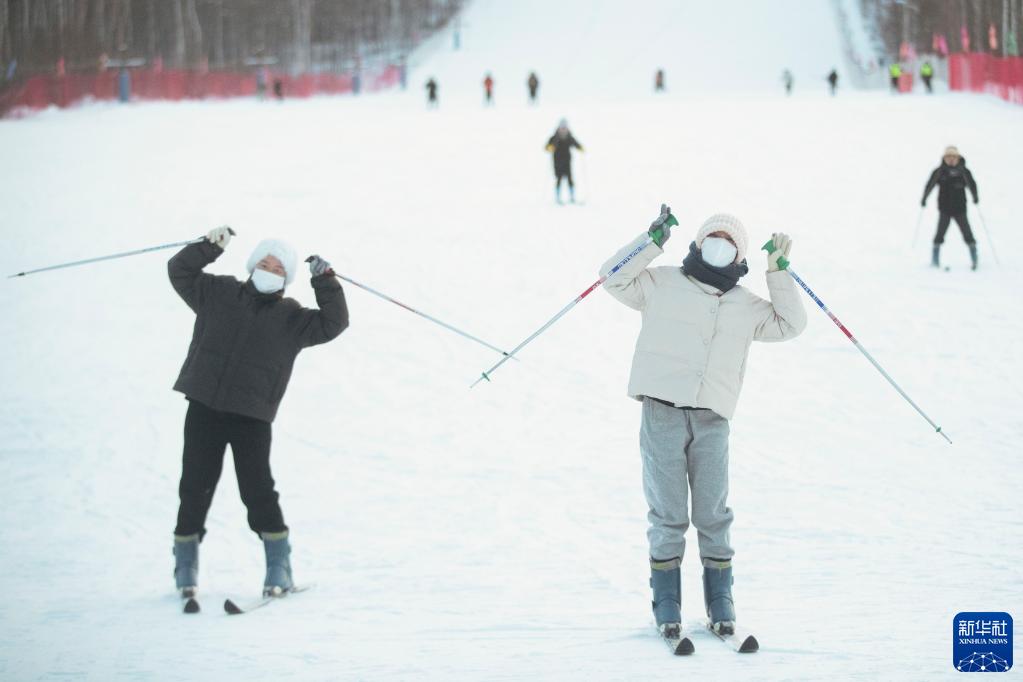 1月7日,游客在漠河市北极村滑雪场内体验滑雪。