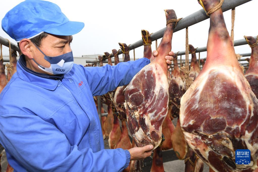 新春佳节临近,浙江省金华市的火腿生产企业进入火腿加工、晒制高峰期,众多火腿在晒场沐浴日光,形成一道独特的风景。