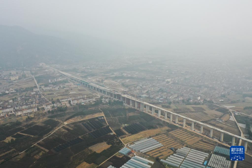1月10日拍摄的建设中的杭温铁路仙居特大桥(无人机照片)。