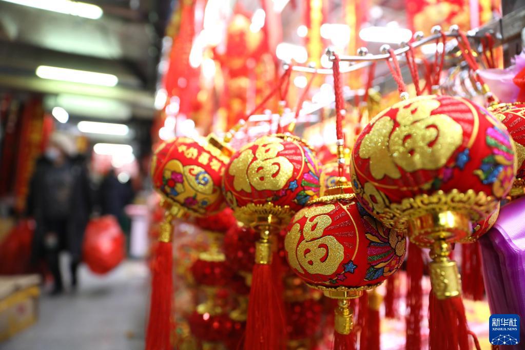 这是辽宁沈阳五爱国际小商品城一家店铺展售的春节饰品(1月11日摄)。