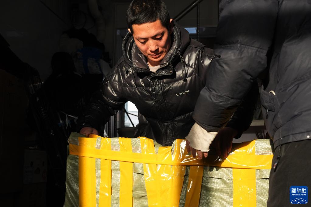 1月10日,东极鱼市里小张鱼行的老板张云浩在打包鱼品准备发货。