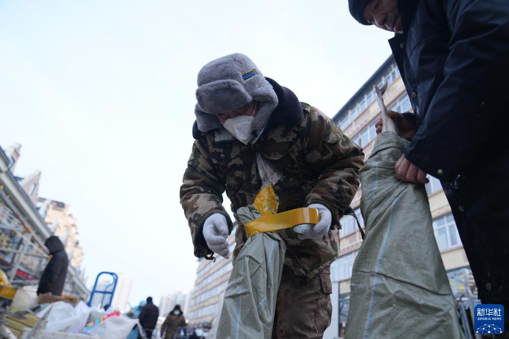 1月10日,东极鱼市的鱼贩(左)在打包鱼品准备发货。