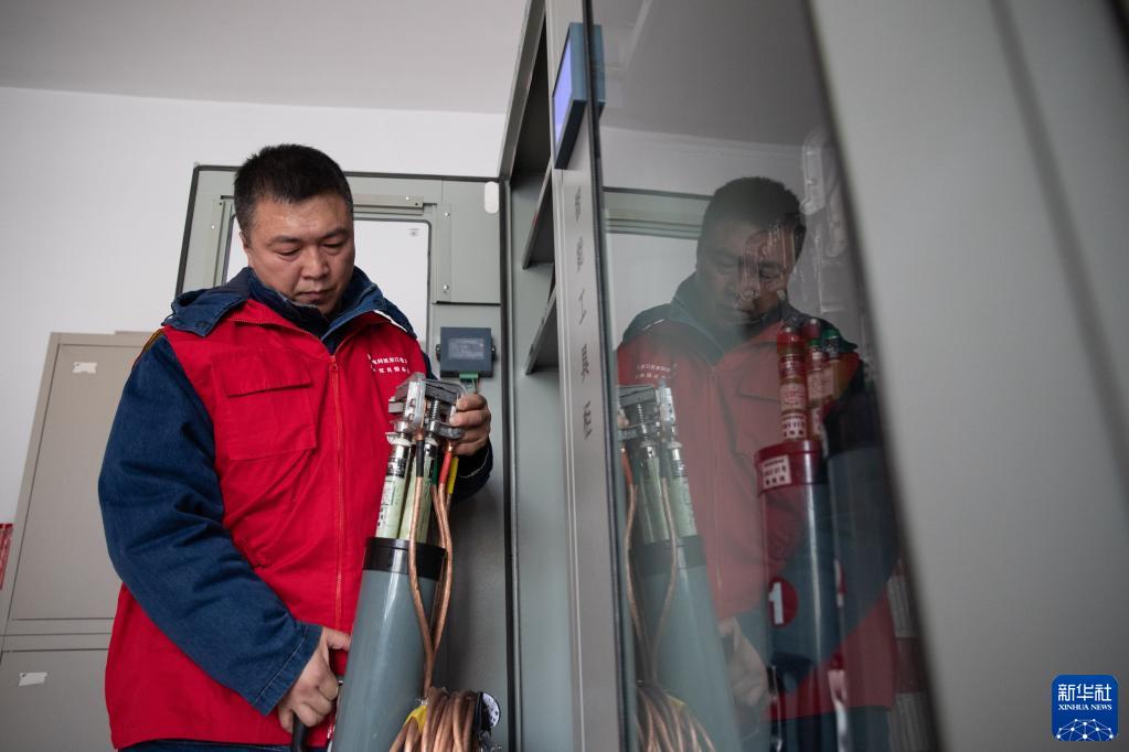 1月9日,在北极村供电所设备间内,线路设备运维人员马国军在检查设备。新华社记者 张涛 摄
