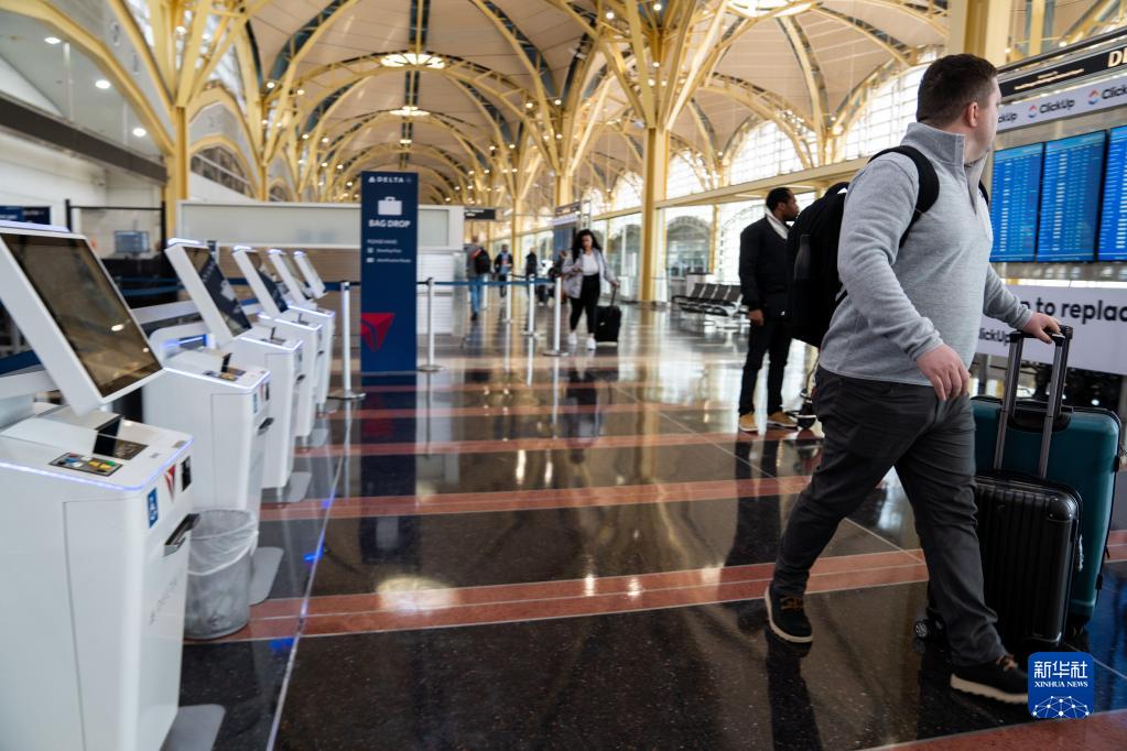 这是1月11日在美国弗吉尼亚州阿灵顿的里根国家机场拍摄的值机柜台。新华社记者 刘杰 摄