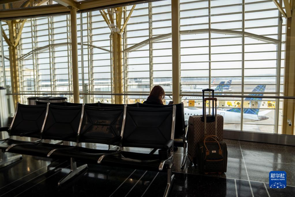 1月11日,一名旅客在美国弗吉尼亚州阿灵顿的里根国家机场等待。新华社记者 刘杰 摄