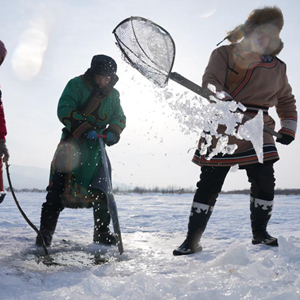赫哲族是我国人口较少民族之一,世居黑龙江、乌苏里江、松花江流域,因地处祖国东方,被称为“守望太阳的民族”。春节临近,在赫哲族聚居区之一黑龙江省抚远市,一些赫哲族群众开展冰湖冬捕、雪地“顶杠”、“鱼王角力”等活动,展现赫哲族的传统民俗。