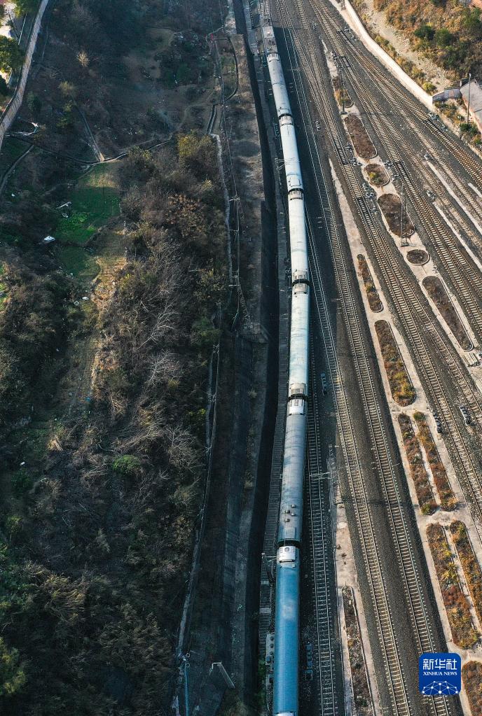 1月11日, 5640次列车从贵州凯里市附近驶过(无人机照片)。