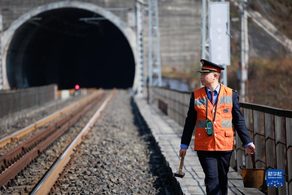 毛忠辉在去刷道岔油的路上(1月11日摄)。