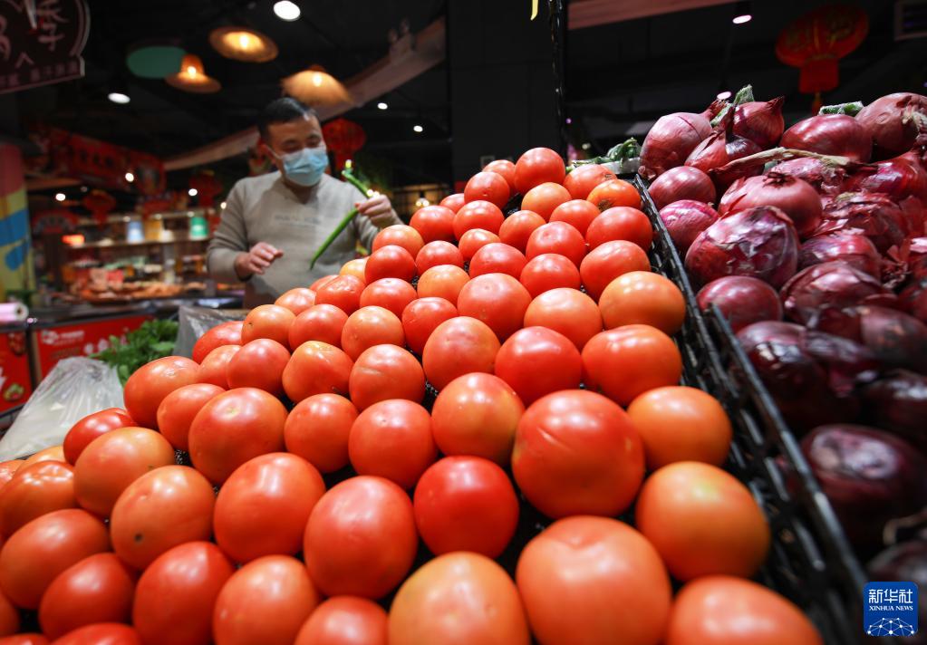 1月12日,顾客在贵州省从江县一家超市选购蔬菜。