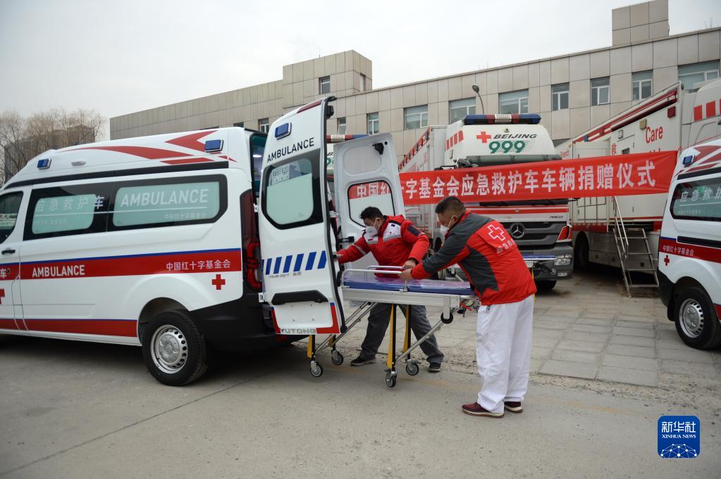 当日,中国红十字基金会向北京市红十字会救援服务中心捐赠50套自动上车担架、3辆应急救护车及配套车载设备,用于中国红十字会救护转运车队执行急救任务,以提高北京的急救转运能力。