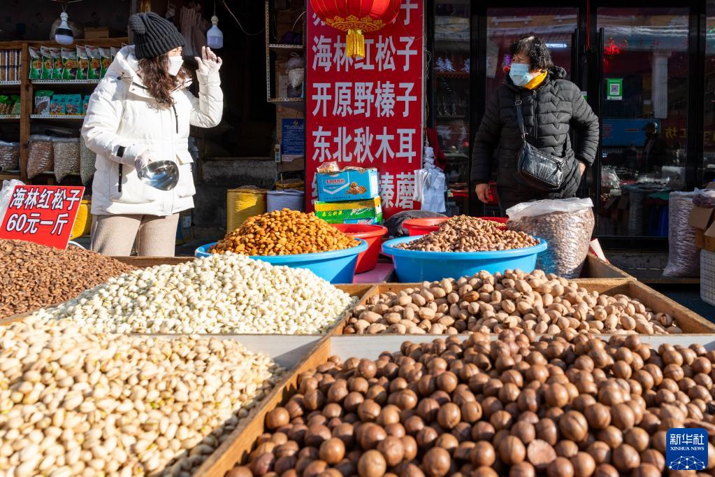 春节临近,黑龙江省绥芬河市龙须沟步行街的年货大集十分热闹。不少市民前来选购年货,迎接新春的到来。