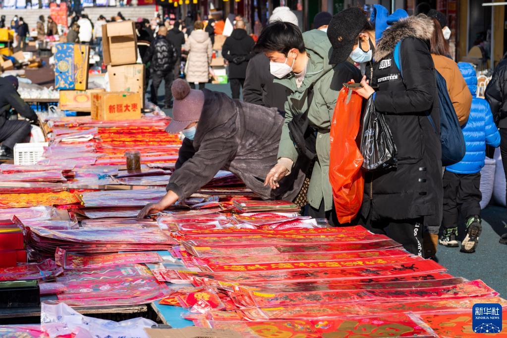 春节临近,黑龙江省绥芬河市龙须沟步行街的年货大集十分热闹。不少市民前来选购年货,迎接新春的到来。