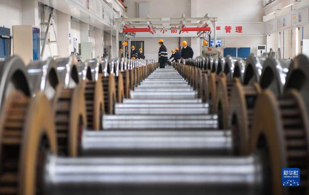 1月12日,职工在包头车辆段检修车间轮轴检修间进行检修作业。