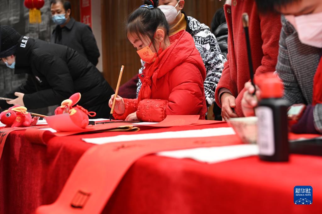 随着春节临近,各地开展各式各样的写春联送祝福活动,营造喜庆的节日氛围。