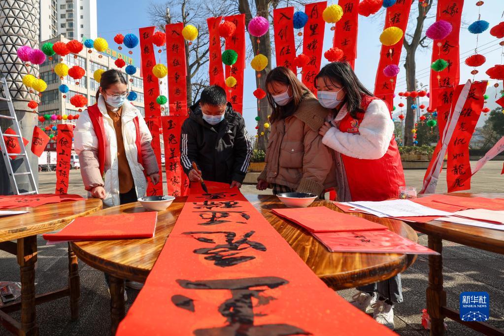 随着春节临近,各地开展各式各样的写春联送祝福活动,营造喜庆的节日氛围。