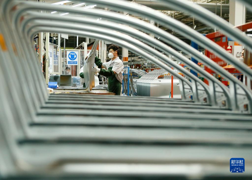 近日,在位于山东省青岛市即墨区的青岛汽车产业新城,汽车生产企业一片繁忙景象,工人们开足马力赶订单,满足国内外市场需求。