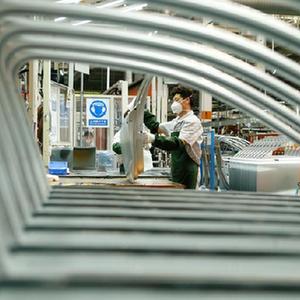 1月12日,山东省青岛市即墨区一家汽车制造企业的工人在生产车门。