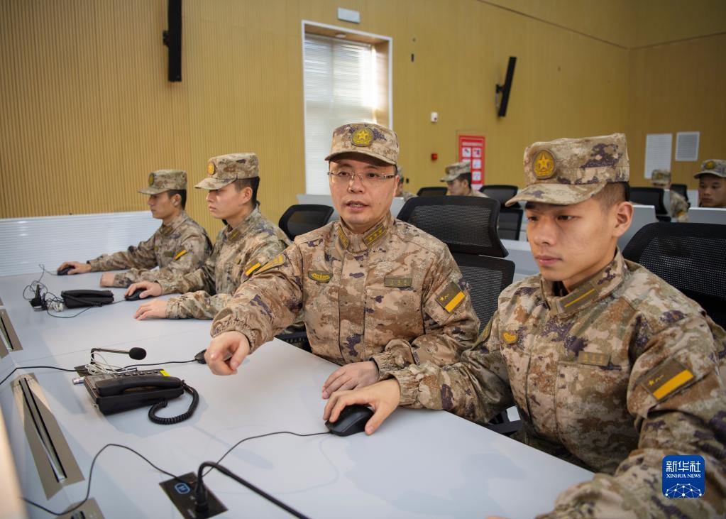火箭军某部处长丁国林带领导调骨干一起研究筹划部队对抗训练(资料照片)。